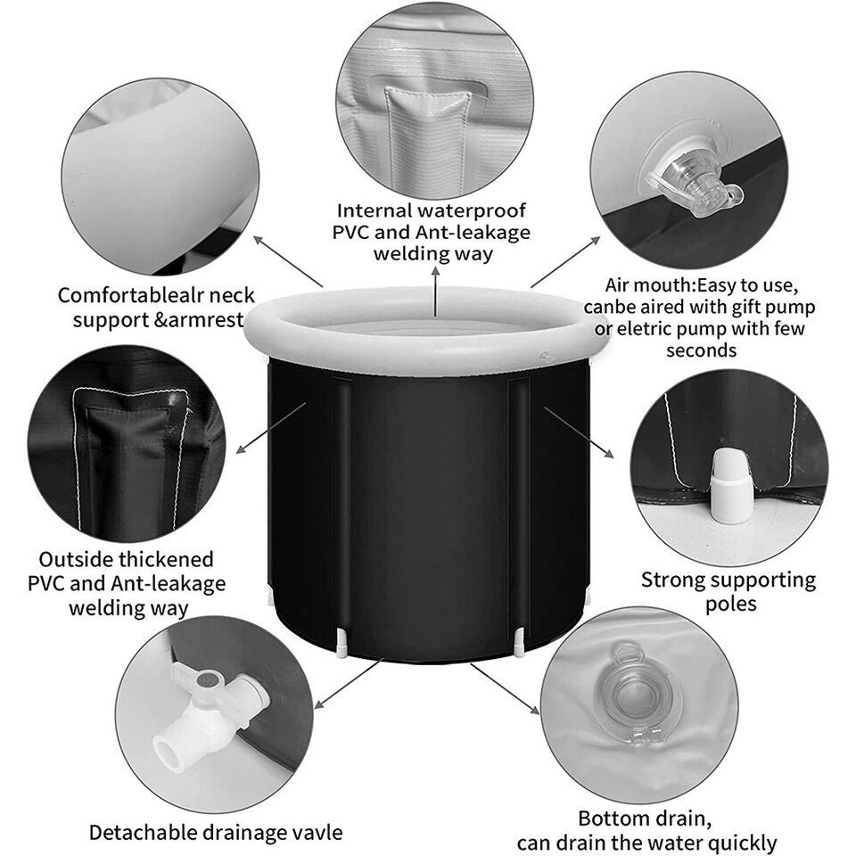 Inflatable ring: The inflatable ring provides comfortable support when sitting in the ice bath.